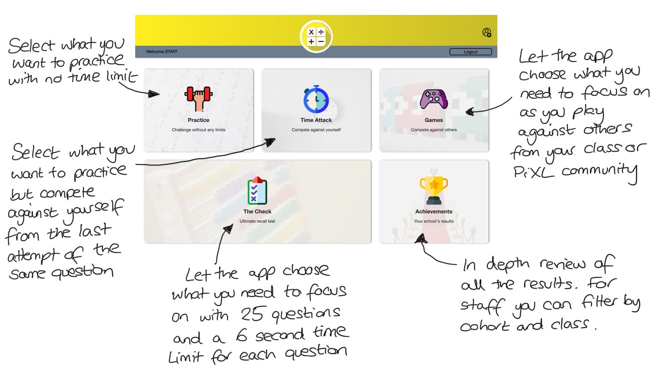 All students will need to be first added to the central database (https://appusers.pixl.org.uk). You will need to upload a list of all students and assign them to a subject and class to allow them to access specific apps (at least a Maths class to access this app).